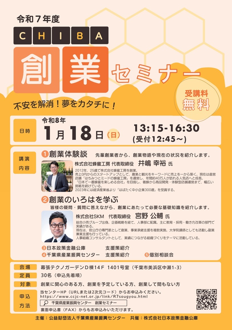 【1/18(日)開催】令和7年度CHIBA創業セミナー~不安を解消!夢をカタチに!~
