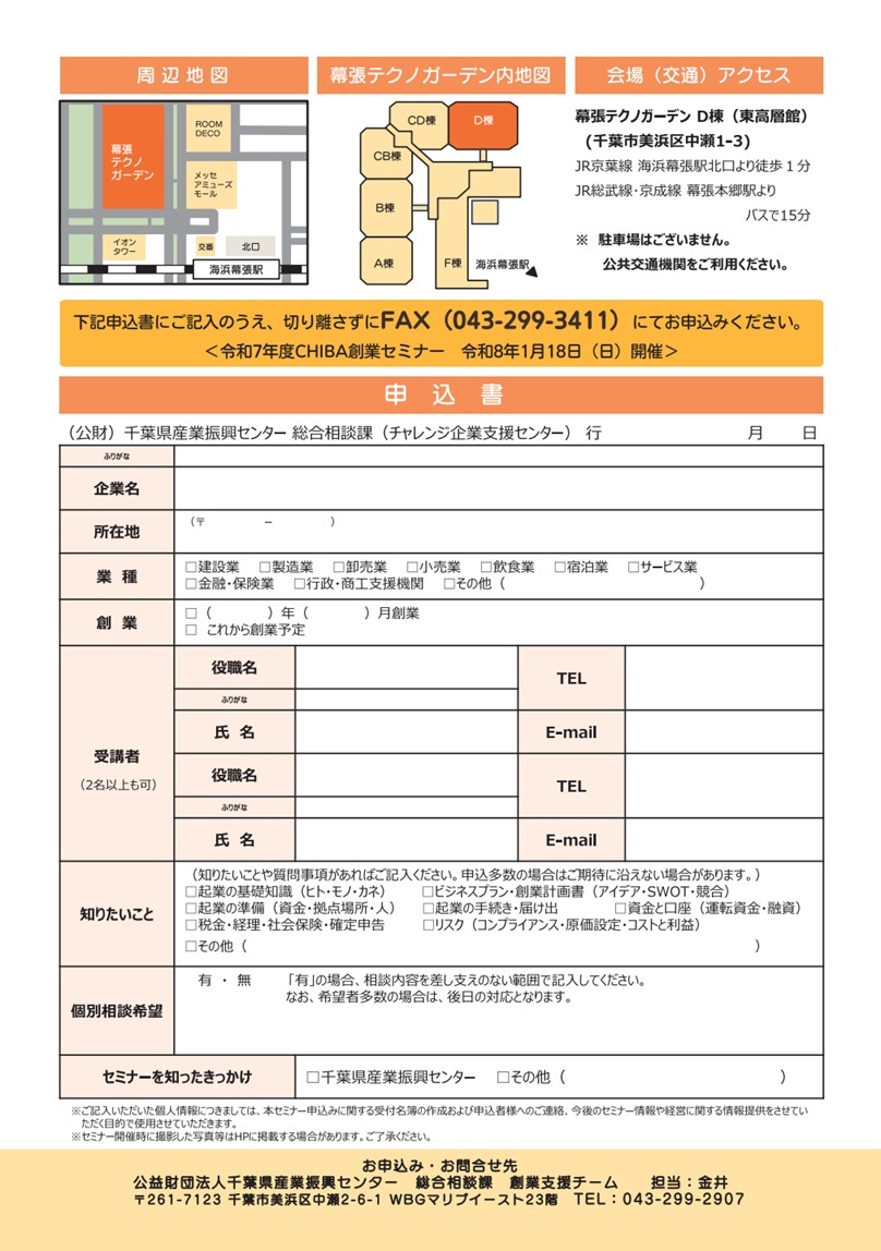 チラシの裏面をFAXでお申込みいただくことも可能です。FAX:043-299-3411
