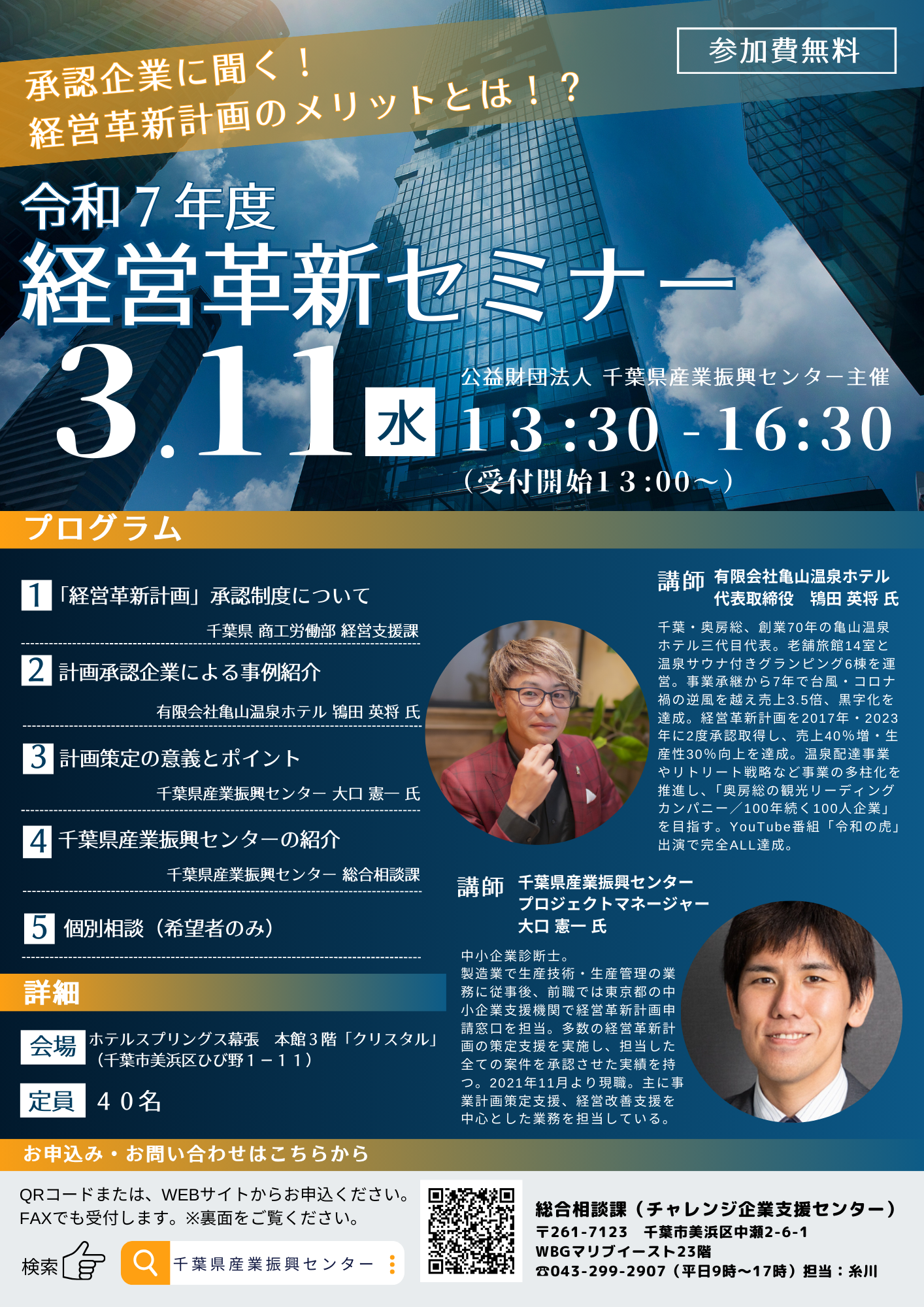 本セミナーは、今こそ経営革新計画に取り組むべき理由を企業・支援担当者・県担当者の多角的な視点で学ぶ実践的なセミナーです。