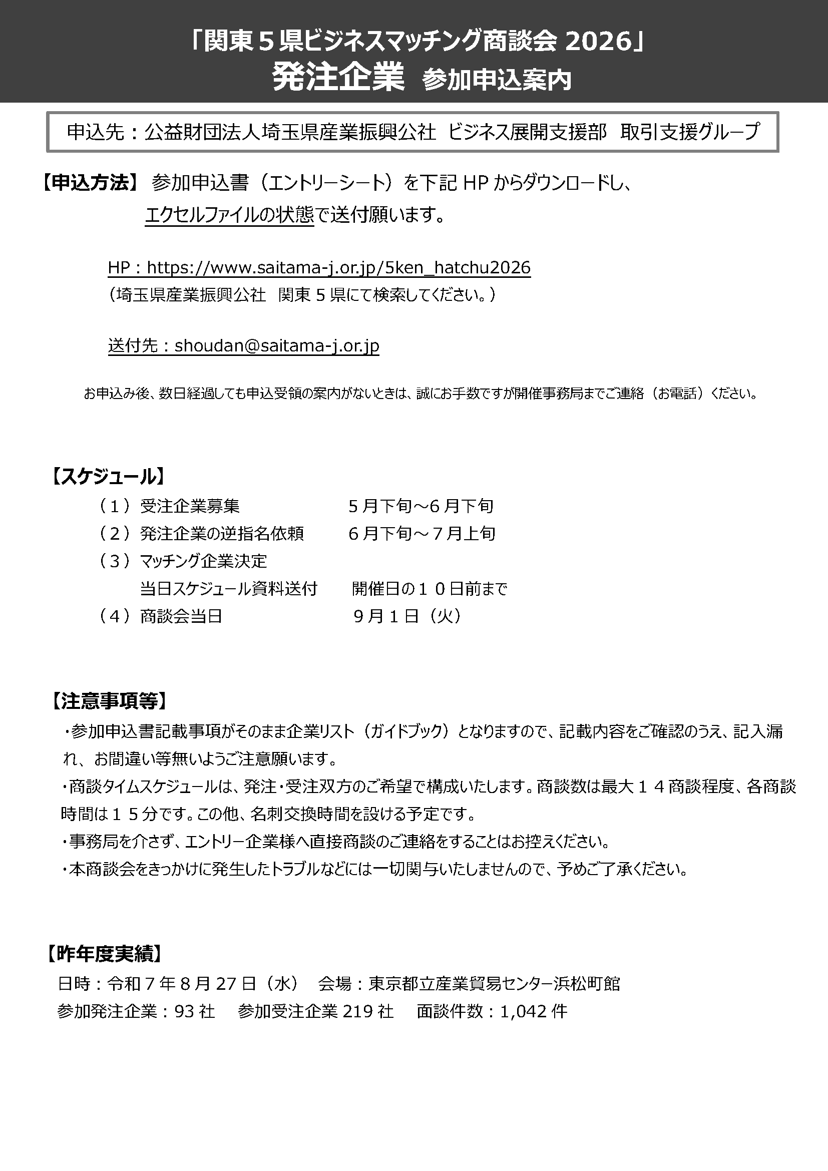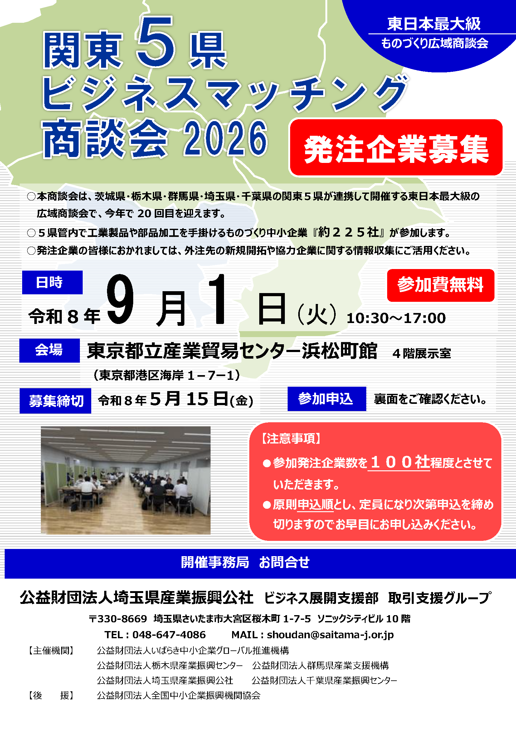関東5県ビジネスマッチング商談会2026チラシおよび申込書(発注企業募集)※pdfはこちら